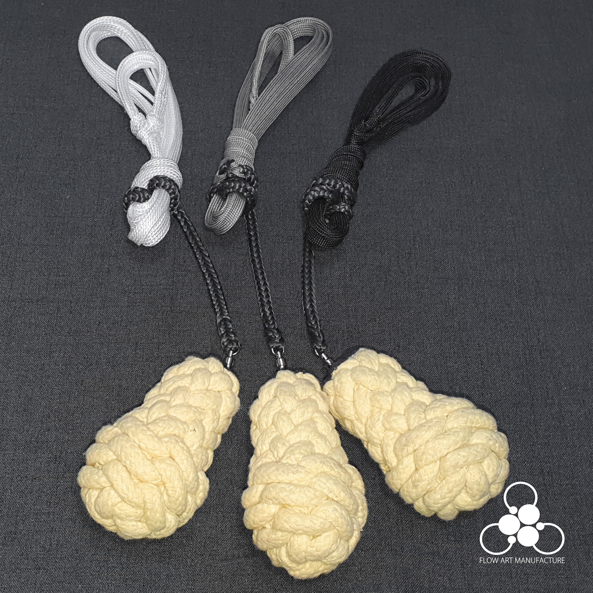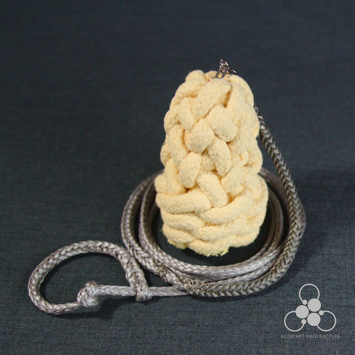 Technora ist sehr hitzebeständig, sollte aber nie mitgetränkt werden und nicht zu lange unbewegt in der Flamme hängen. Um ungewolltes Tränken zu vermeiden, sind Head und Technora durch zwei Kettenglieder getrennt. Weitere Tipps zur Pflege deines Feuerprops findest du hier.